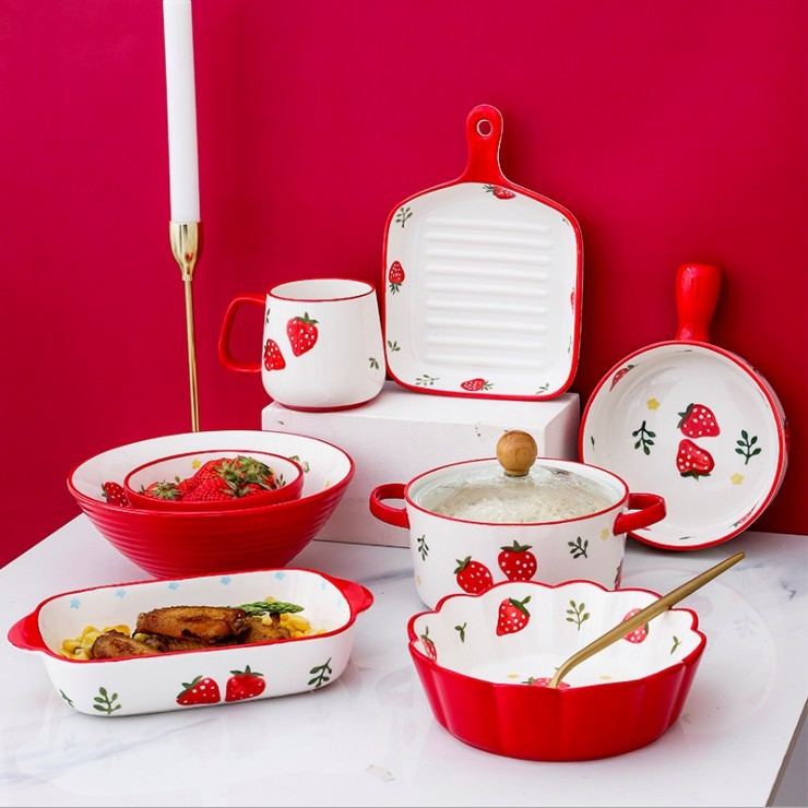 Trọn bộ bát đĩa nồi Decor bếp dễ thương và cao cấp hình quả dâu...