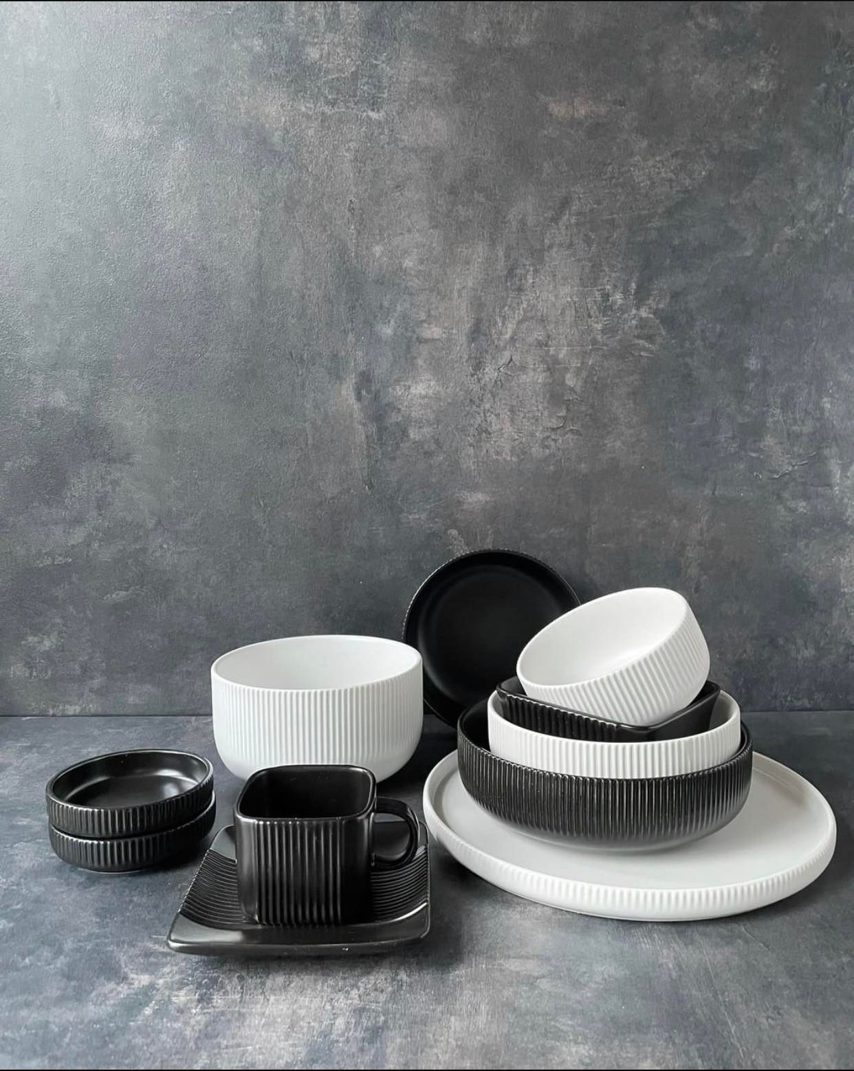 Trọn bộ bát đĩa và ly màu trắng đen Decor sang trọng và cao cấp!...